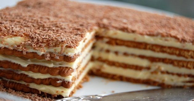Σε ένα μπολ βάζουμε λίγο γάλα ζεστό με κονιάκ [προαιρετικά αν υπάρχουν παιδιά], βουτάμε τα μπισκότα λίγο (τόσο για να μαλακώσουν χωρίς να λιώσουν) και τα στρώνουμε στον πάτο ενός μεσαίου πυρέξ.