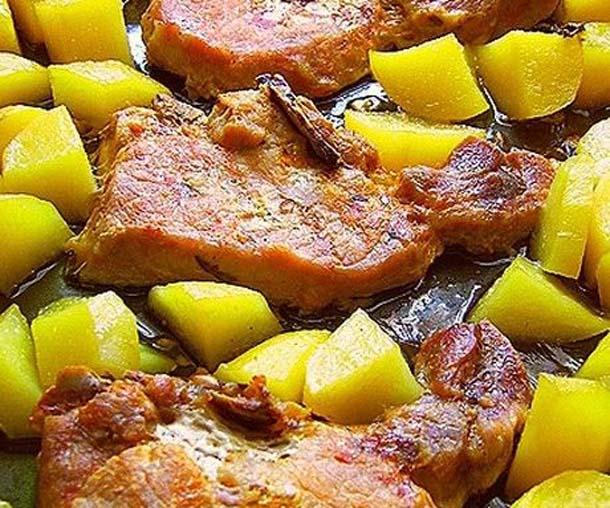 Xοιρινές μπριζόλες με πατάτες στο φούρνο