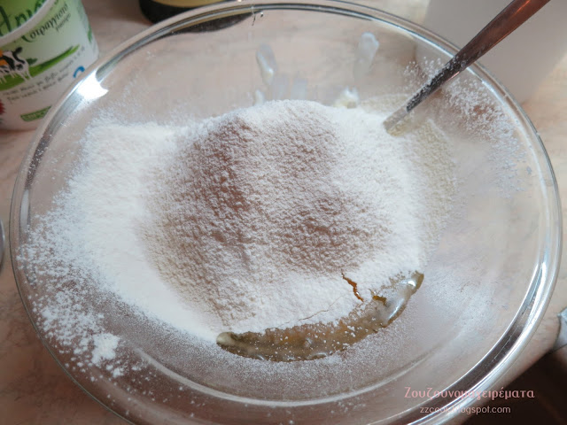 - 1 1/2 ποτήρι αλεύρι