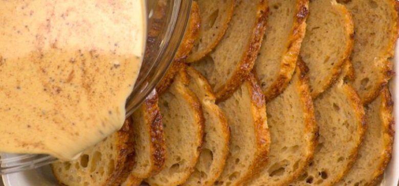 Σε άλλες συνταγές για αυγόφετες, τα ψωμάκια κόβονται σε κύβους, αλλά εμείς επιλέξαμε να κρατήσουμε τις φέτες ολόκληρες. Μπορεί η εμφάνιση να μην λέει πολλά (παρ’όλο που είναι πεντανόστιμο), αλλά με αυτόν τον τρόπο οι κόρες ψήνονται καλά και γίνονται τραγανές.