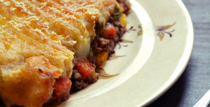 Στη συνέχεια ρίχνουμε τον πουρέ πάνω από το μείγμα του κιμά και ψήνουμε σε προθερμασμένο φούρνο στους 180 βαθμούς για 25 με 30 λεπτά.