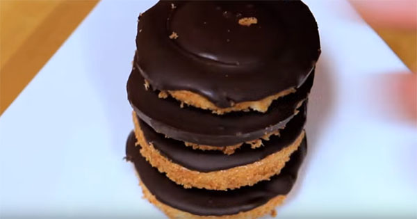- Στη συνέχεια και αφού έχετε λιώσει τη σοκολάτα σε μπεν μαρί την απλώνετε πάνω σε κάθε κεκάκι. Μην το παρακάνετε. Θέλουμε λεπτό στρώμα σοκολάτας.
