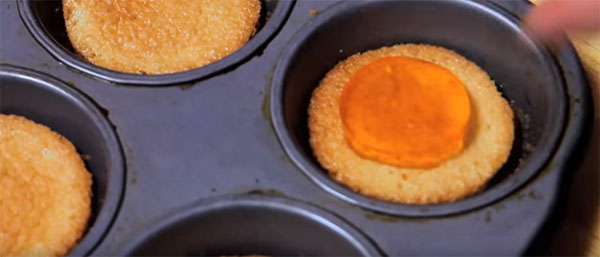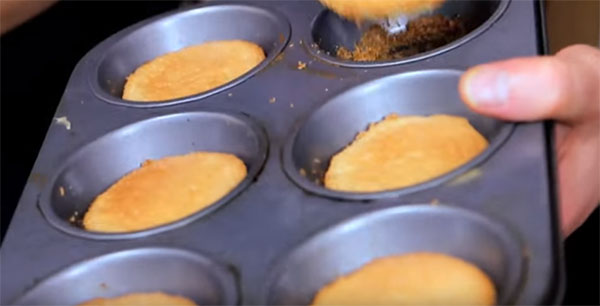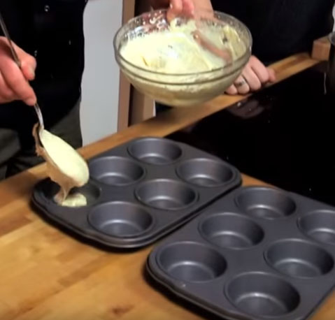 - Ρίξτε το μείγμα σε ταψάκια για muffins. Περίπου τόσο όσο να καλύψει τον πάτο.