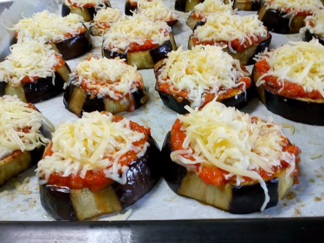 Μελιτζάνες στη λαδόκολλα με σάλτσα και τυριά, ψημένες στον φούρνο σαν πιτσάκια – Εικόνα 2
