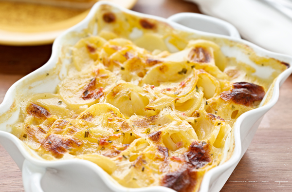 Προσθέτουμε στην μπεσαμέλ τις ελαφρώς βρασμένες πατάτες, ανακατεύουμε προσεκτικά κι αδειάζουμε σε πυρίμαχο σκεύος. Ψήνουμε σε προθερμασμένο φούρνο στους 180 βαθμούς για 35-40 λεπτά (ανάλογα με τον φούρνο μας) κι είναι έτοιμο να το απολαύσουμε.