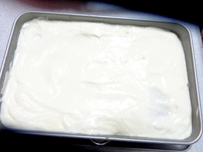 Σε ένα μπολ αναμειγνύουμε τη ζάχαρη άχνη και το γιαούρτι και ανακατεύουμε. Στη συνέχεια προσθέτουμε στο μπολ και ολόκληρο το κουτί με το ζαχαρούχο γάλα.