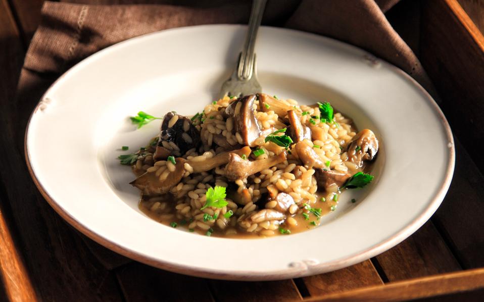 Ανακατεύουμε συνεχώς για αρκετή ώρα μέχρι να απορροφηθεί ο ζωμός. Προσθέτουμε κι άλλο ζωμό, λίγο λίγο, ανακατεύοντας μέχρι να έχουμε το επιθυμητό αποτέλεσμα, δηλαδή μαλακό ρύζι με υφή κρέμας (να μην μείνει στεγνό). Στο τέλος κατεβάζουμε από την φωτιά και βάζουμε σε κομματάκια το βούτυρο.