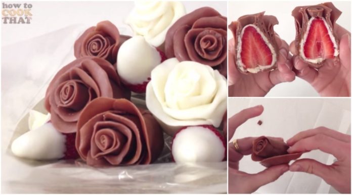 Αυτά τα σοκολατένια τριανταφυλλάκια με γέμιση φρέσκιας φράουλας φαίνονται εντυπωσιακά και πεντανόστιμα!