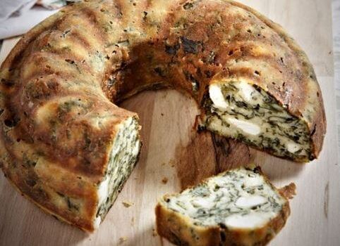Αδειάζετε το μείγμα στη λαδωμένη και αλευρωμένη φόρμα, χτυπάτε τη φόρμα πάνω στο πάγκο εργασίας σας να ομαλοποιηθεί το μείγμα και να απλωθεί ομοιόμορφα, και το ψήνετε στο προθερμασμένο φούρνο για 1-1:10 ώρα περίπου ή μέχρι να πάρει η επιφάνειά της ένα χρυσο-καφέ χρώμα.