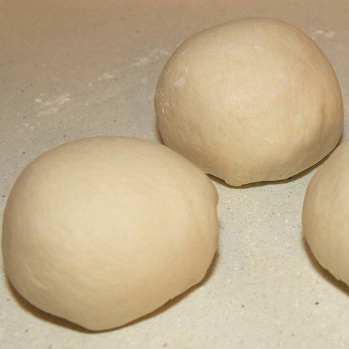 Παίρνουμε μία – μία τις μπάλες και σε αλευρωμένο πάγκο, τις ανοίγουμε σε λεπτά φύλλα, λίγο μεγαλύτερα απ᾿ το ταψί μας.