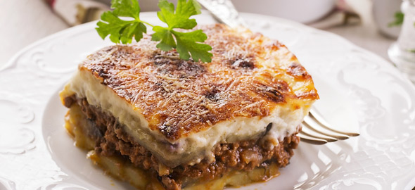 Όταν ψηθεί ο κιμάς αφαιρέστε το ξυλάκι κανέλας και τη σκελίδα σκόρδου. Για να ετοιμάσετε τις πατάτες και τις μελιτζάνες μπορείτε είτε να τις ψήσετε σε λαδωμένο ταψί (αφού τις πασπαλίσετε με λίγο λαδάκι) σε μέτρια φωτιά για ένα τέταρτο ή να τις τηγανίσετε. Ένα μυστικό για να μην απορροφούν πολύ λάδι οι μελιτζάνες κατά το τηγάνισμα είναι να χτυπήστε τα ασπράδια 2 αυγών και να τις βουτάτε στο ασπράδι πριν τις ρίξετε στο τηγάνι. Μόλις τηγανιστούν τοποθετήστε τις σε ένα πιάτο που έχετε τοποθετήσει απορροφητικό χαρτί για να απορροφήσει το υπερβολικό λάδι.