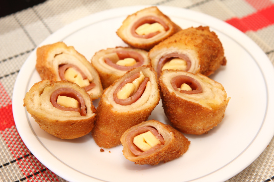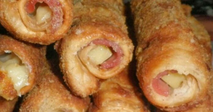 - Ζεσταίνουμε το λάδι σε ένα βαθύ τηγάνι. Τοποθετούμε κάθε ρολό στο τηγάνι και τηγανίζουμε μέχρι να ροδίσουν από όλες τις μεριές. Αφαιρούμε από το τηγάνι και τα τοποθετούμε σε χαρτί κουζίνας. Τα σερβίρουζε ζεστά, ολόκληρα ή κομμένα στη μέση ή σε περισσότερα κομμάτια για μεζέ. [Εναλλακτικά μπορούμε να τα ψήσουμε σε προθερμασμένο φούρνο στους 180 βαθμούς]